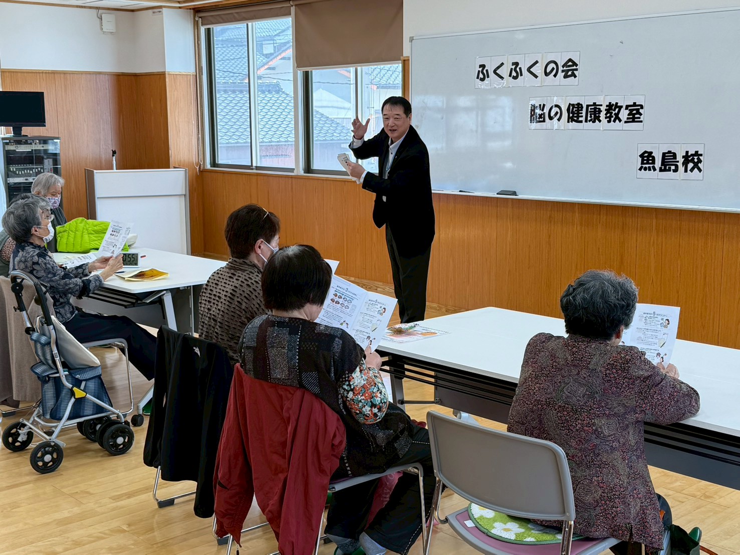 ふくふくの会が開催している「脳の健康教室魚島校」の初めての修了式を行いました。4名の学習者さんを2名のサポーターさんが支えるという小さな教室ですが、5か月間、あたたかな雰囲気のもとで、楽しく教室を続けることができました。