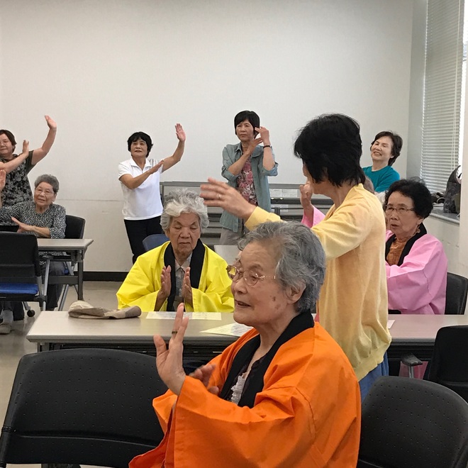学習が始まる前に、棒体操を「ふくふく音頭」の曲に合わせてしたのですが......皆さん、誰一人、傍観されることなく、楽しそうにしてくれました。やっぱり、音楽に合わせてすると......リズムもとれてよかったです。次回は、違うバージョンでしてみたいと思います。