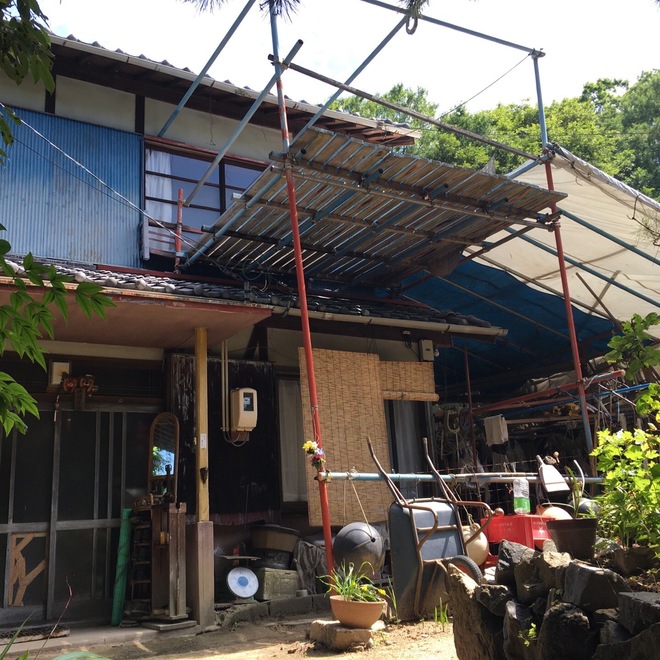 ふと見上げると子ども達と夕涼みしたんだろう手作り感満載の夕涼み台...