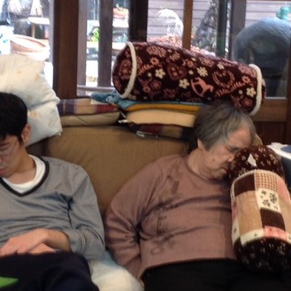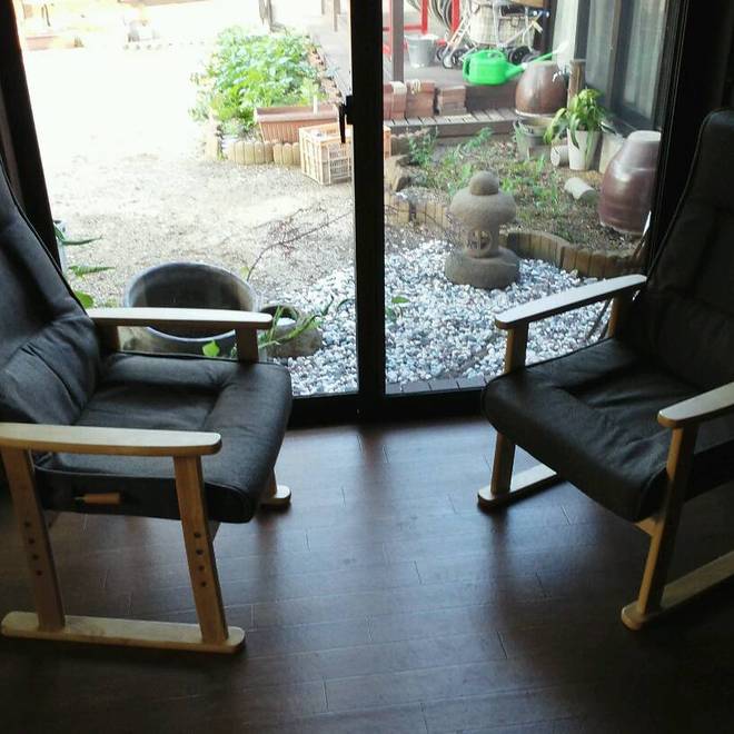 二人の利用者さんが椅子に座られて、ゆったりした空間で体や心を休められていました!一人はウトウト.........もう一人はボッーと座っていました。