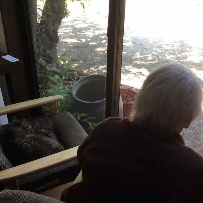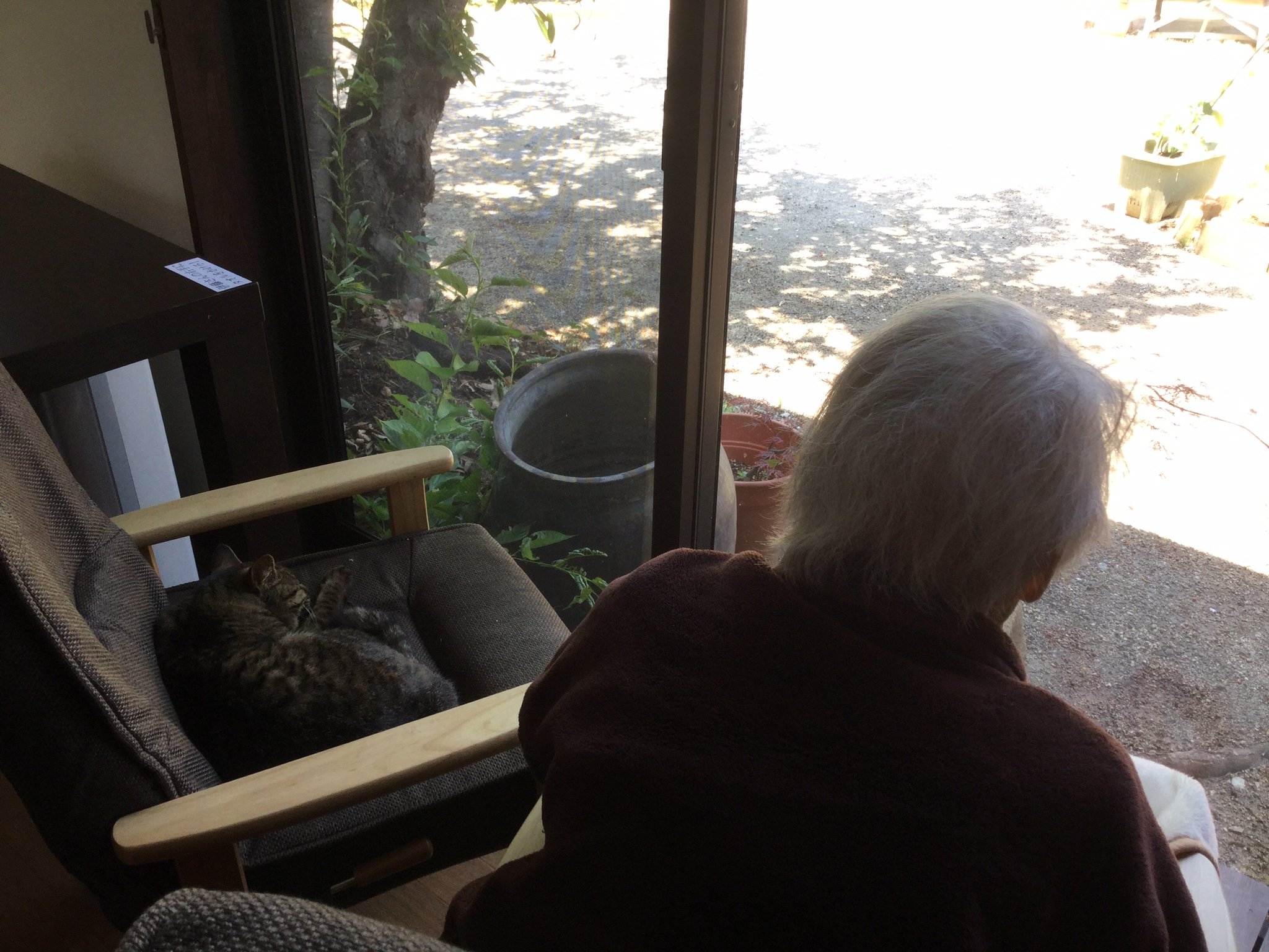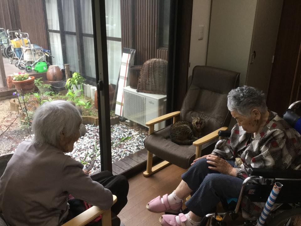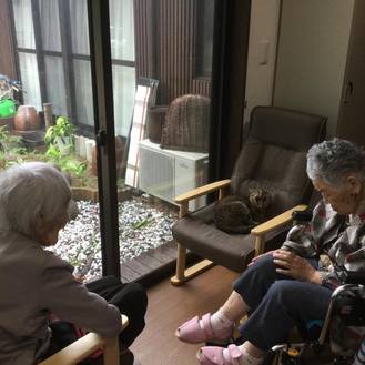 この頃では、すっかり落ち着いて、梅雨の雨を猫のふくちゃんと一緒にボーっと眺める利用者さんがいて、なんだかほっとしています。