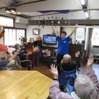 さて、実際やってみてなんですがご利用者さんの反応とてもいいです。ラジオ体操などでは全く身体を動かさずぶすっとしている人も笑いが伝染してちょこちょこ動いてくれます。